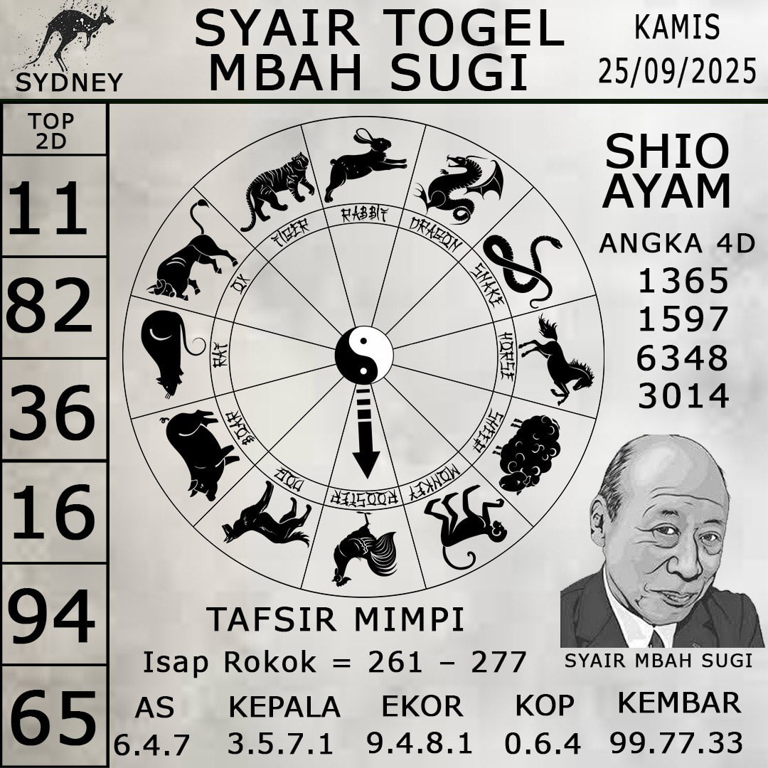 Syair Sdy—Syair Sydney—Kode Syair Sdy adalah sumber informasi yang sangat membantu dalam menentukan pemenang dalam permainan Togel Sydney. Dengan mengikuti Forum Syair Sdy ini, Anda akan mendapatkan panduan terbaik untuk membuat keputusan taruhan yang lebih bijak dan akurat. Silahkan gabungkan prediksi syair sdy kami dengan angka yang Anda miliki setelah Anda mengetahuinya.