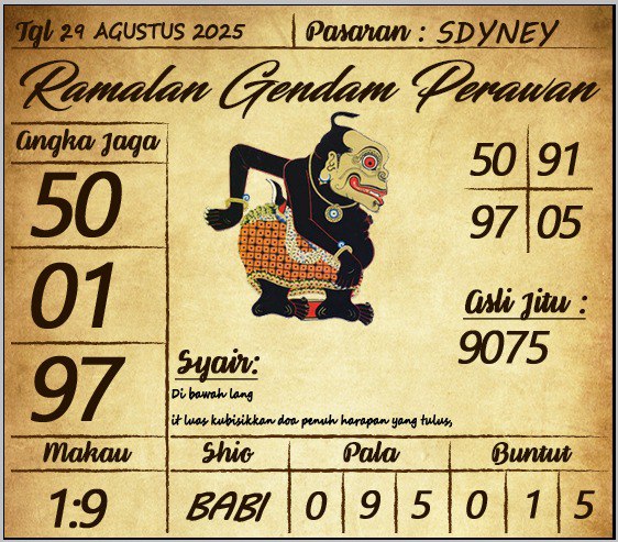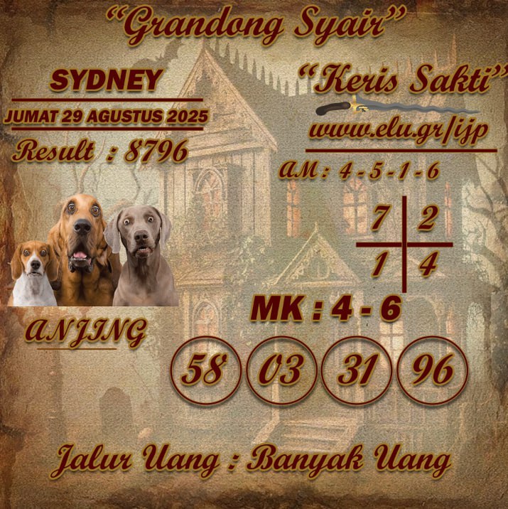 Syair Sdy—Syair Sydney—Kode Syair Sdy adalah sumber informasi yang sangat membantu dalam menentukan pemenang dalam permainan Togel Sydney. Dengan mengikuti Forum Syair Sdy ini, Anda akan mendapatkan panduan terbaik untuk membuat keputusan taruhan yang lebih bijak dan akurat. Silahkan gabungkan prediksi syair sdy kami dengan angka yang Anda miliki setelah Anda mengetahuinya.