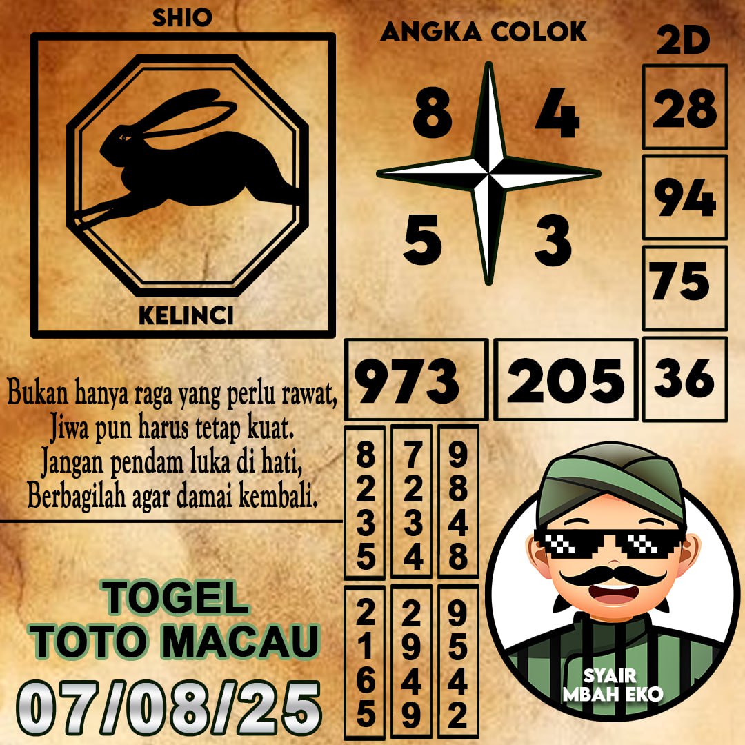 KODE SYAIR MACAU POOLS 7 AGUSTUS 2025