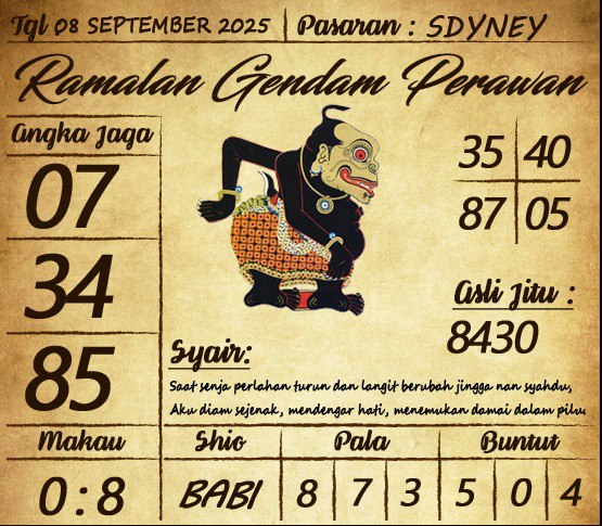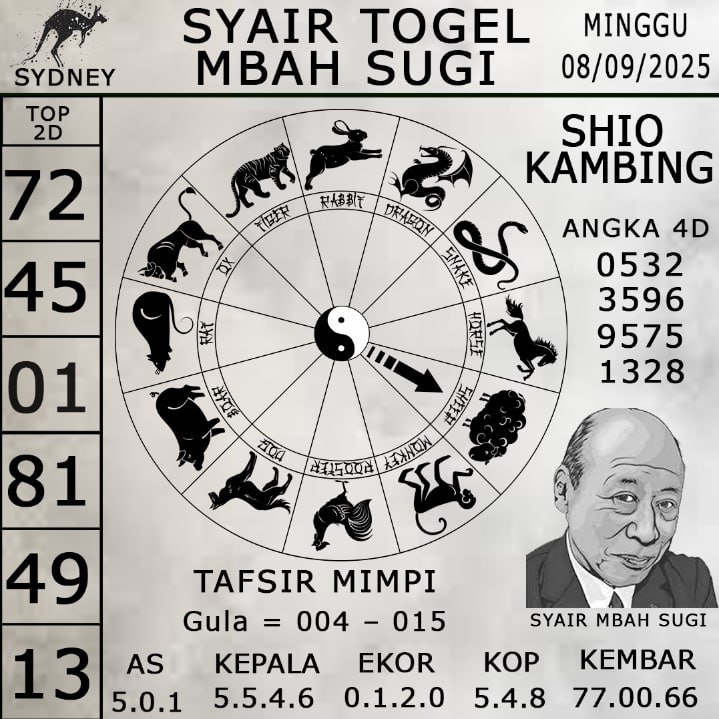 Syair Sdy—Syair Sydney—Kode Syair Sdy adalah sumber informasi yang sangat membantu dalam menentukan pemenang dalam permainan Togel Sydney. Dengan mengikuti Forum Syair Sdy ini, Anda akan mendapatkan panduan terbaik untuk membuat keputusan taruhan yang lebih bijak dan akurat. Silahkan gabungkan prediksi syair sdy kami dengan angka yang Anda miliki setelah Anda mengetahuinya.